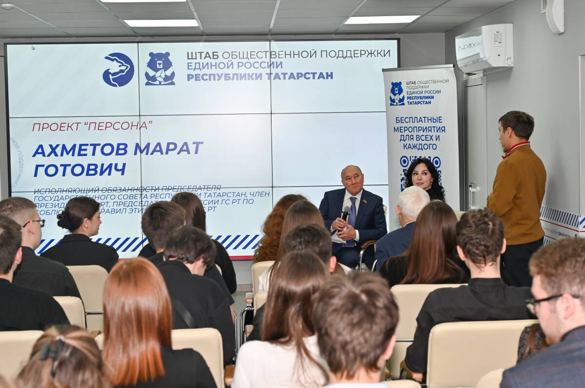 Исполняющий обязанности председателя Госсовета Татарстана Марат Ахметов встретился со студентами Казанского аграрного университета, обучающимися по направлению государственного и муниципального управления. Встреча прошла в рамках проекта «Персона» в Штабе общественной поддержки «Единой России» в республике, сообщает пресс-служба Госсовета РТ.