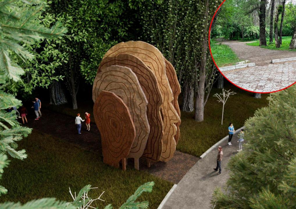 У южного входа со стороны проспекта Суюнбая разместится инсталляция, посвящённая Эдуарду Бауму — основателю рощи. Она выполнена из отдельных фрагментов, которые под определённым углом складываются в портрет учёного. Вторая композиция — «Годичные кольца», у входа со стороны улицы Сейфуллина, символизирует время, рост и непрерывное развитие.