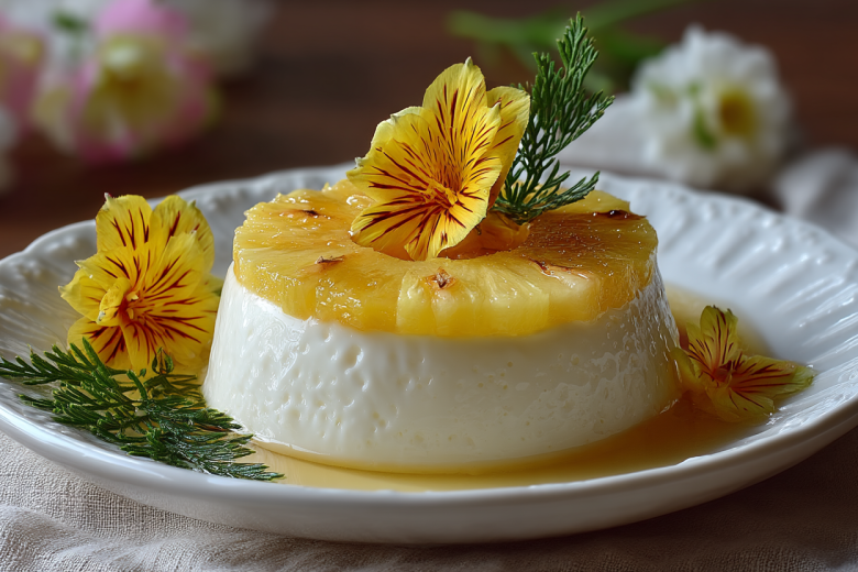 Получается обалденная вкуснятина: нежная кокосовая основа с бархатистой текстурой, а внутри — сочные кусочки ананасов и яркий слой ананасового желе. Десерт выглядит как произведение искусства, а готовится из доступных продуктов.