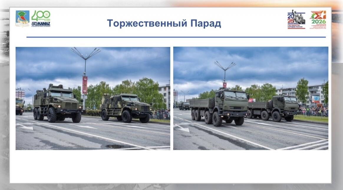В составе колонн пройдёт современная техника, выпускаемая в Набережных Челнах для Вооруженных Сил Российской Федерации, а также образцы времен Великой Отечественной войны. Парад завершится возложением венков и цветов к мемориалу.