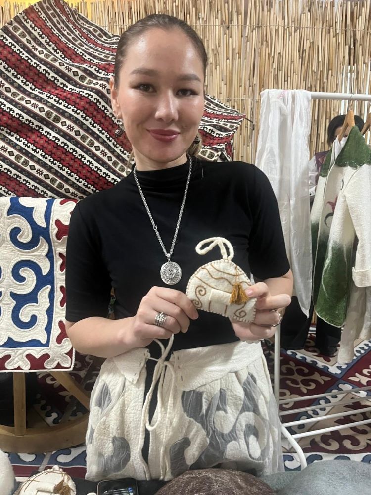 Из новинок у Айданы – обереги из войлока в виде юрты. Внутрь она положила пучок полыни, которая по преданию защищает человека от злых духов и недугов.