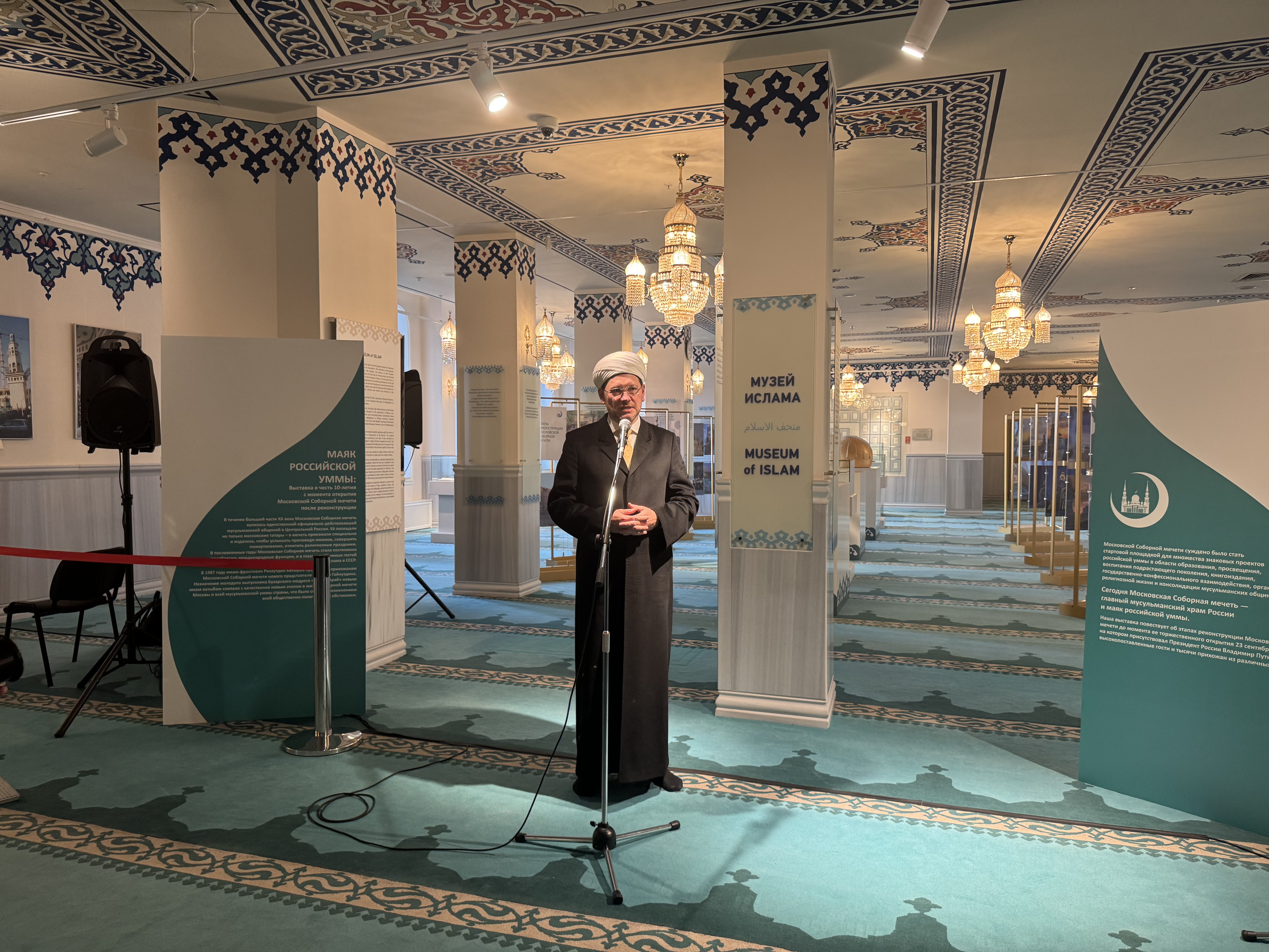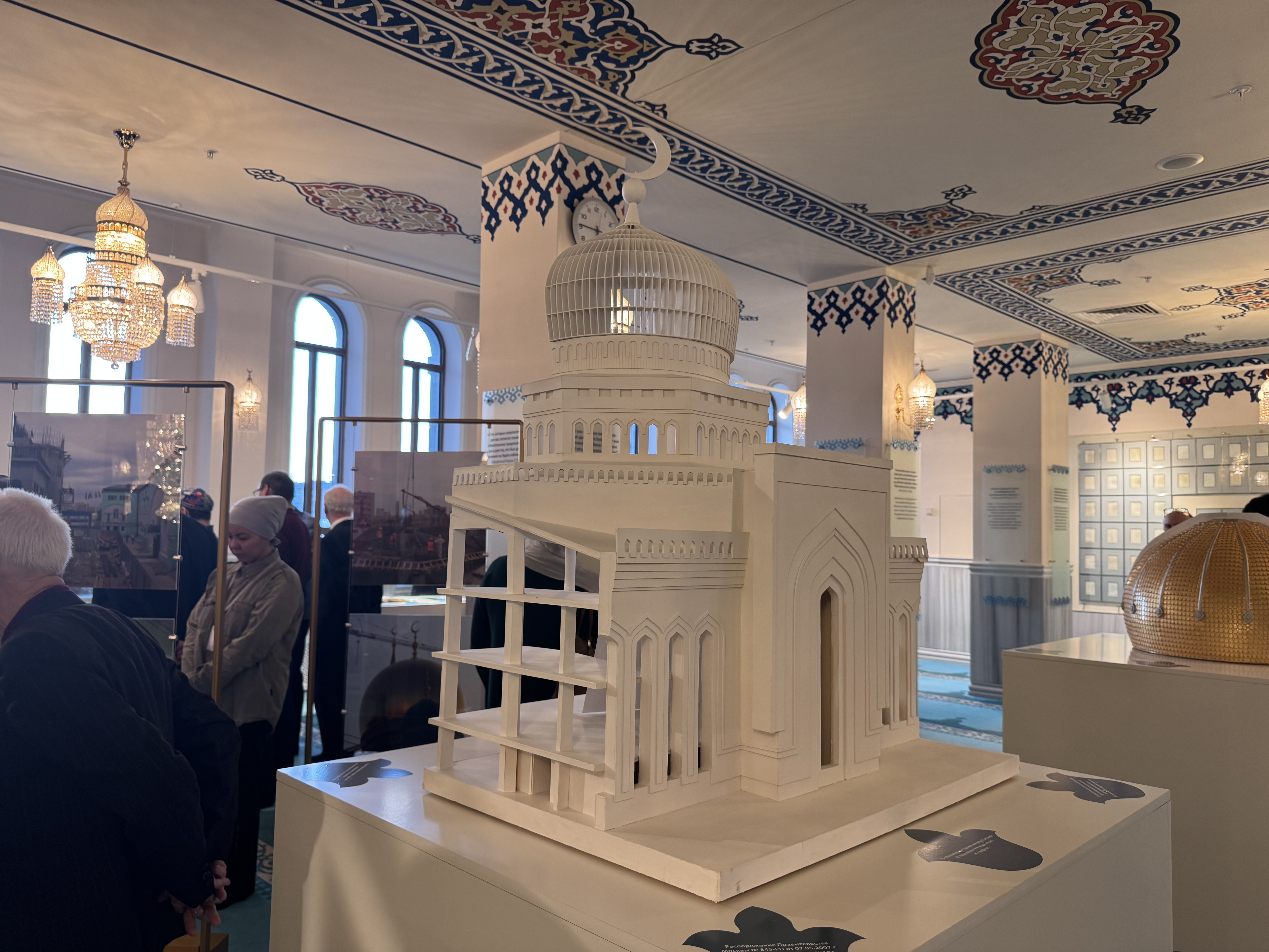 Накануне в музее ислама открылась выставка «Московская соборная мечеть: маяк российской уммы», посвященная 10-летию открытия столичной мечети после масштабной реконструкции. На экспозиции представлены проектные макеты мечети, элемент полотна, крепящегося на подкупольный барабан, документы и фотографии, повествующие об истории Московской соборной мечети.